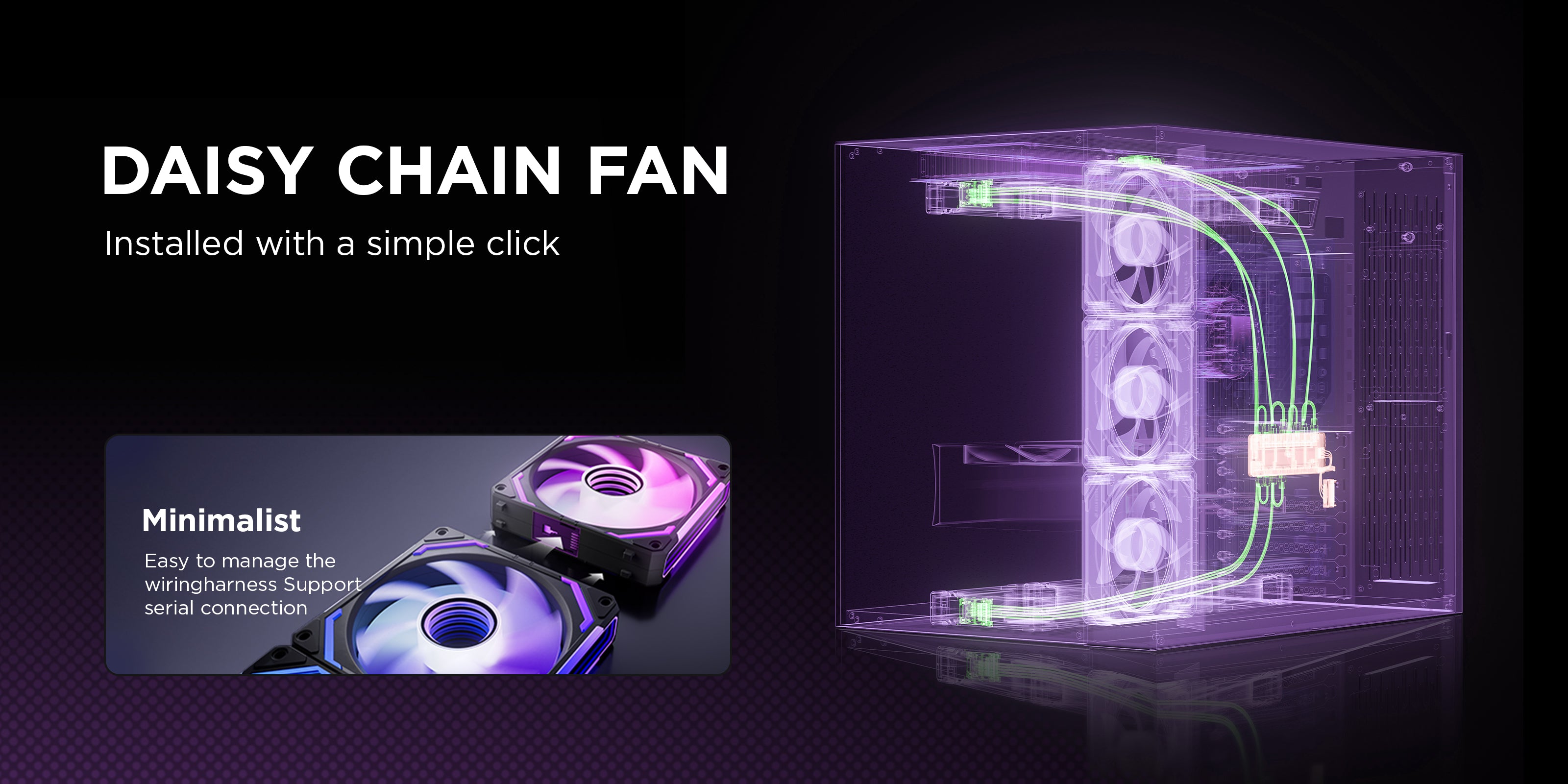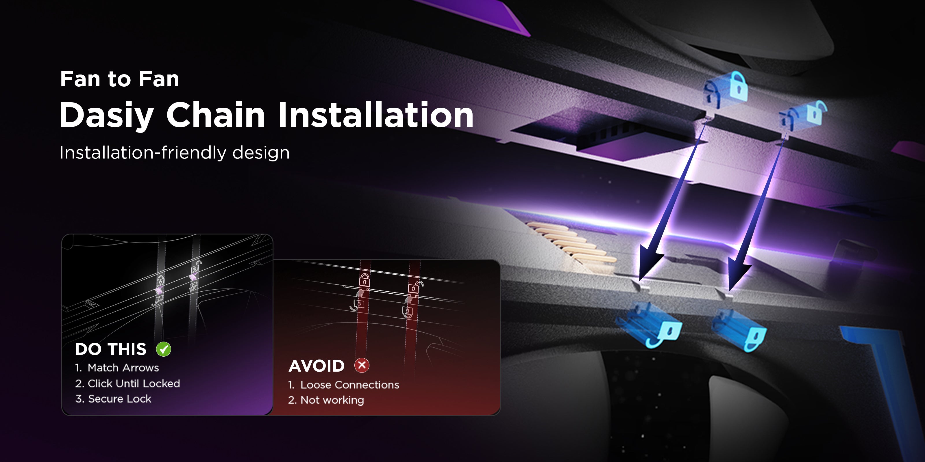 - Cable Management: With our unique interlocking connectors, installation is so easy. Only one cable is required per fan cluster, effectively reducing cable clutter.