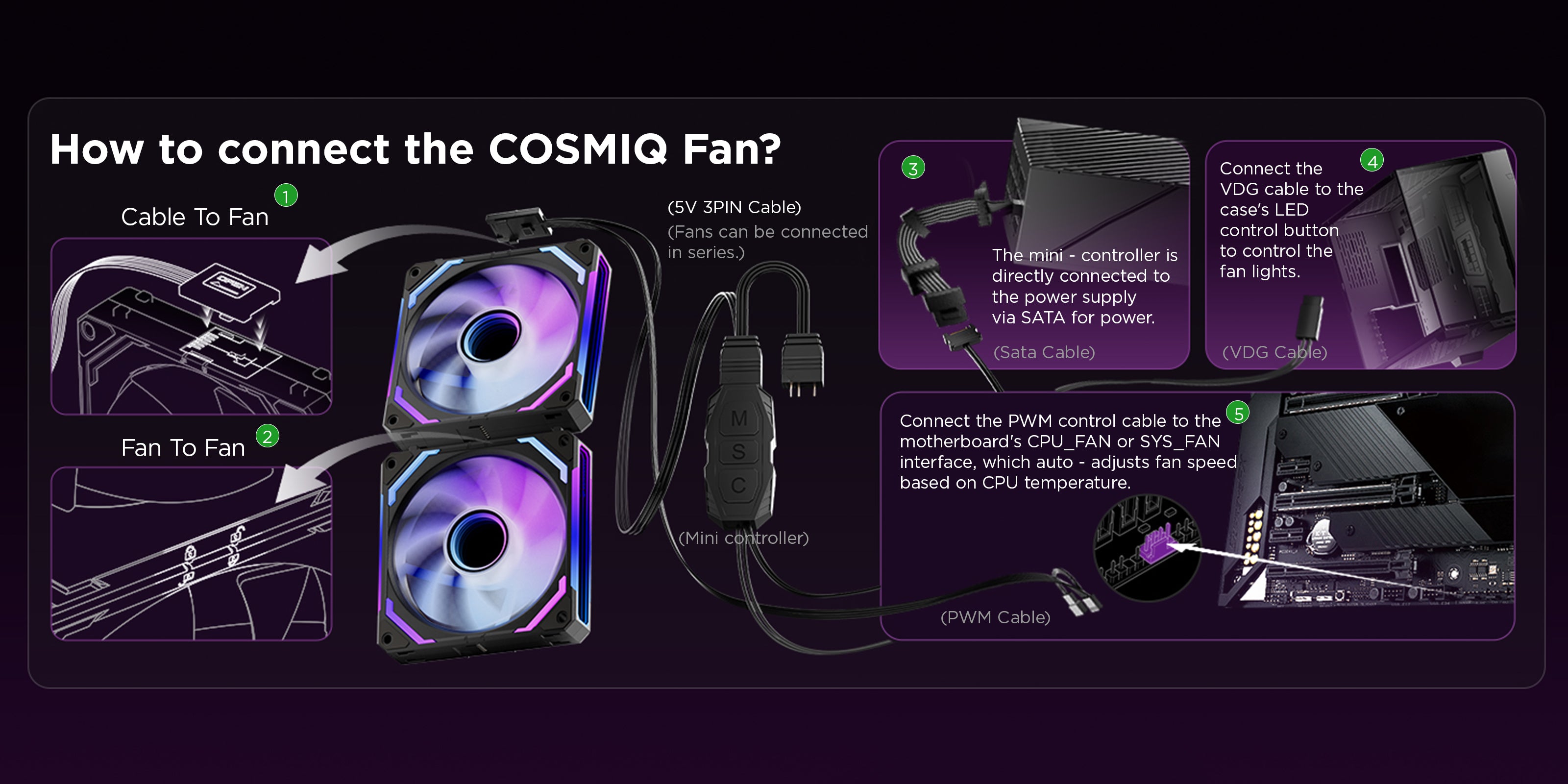 - Sync with Music: The included RGB controller features a high-sensitivity wireless receiver, , just open the music mode through fan hub, the dynamic lighting will automatically change with surrounding sounds. Groove to the beat, dance with the lights.