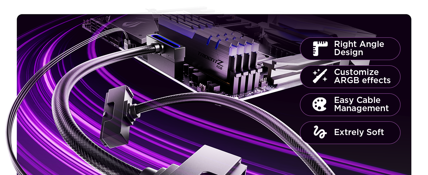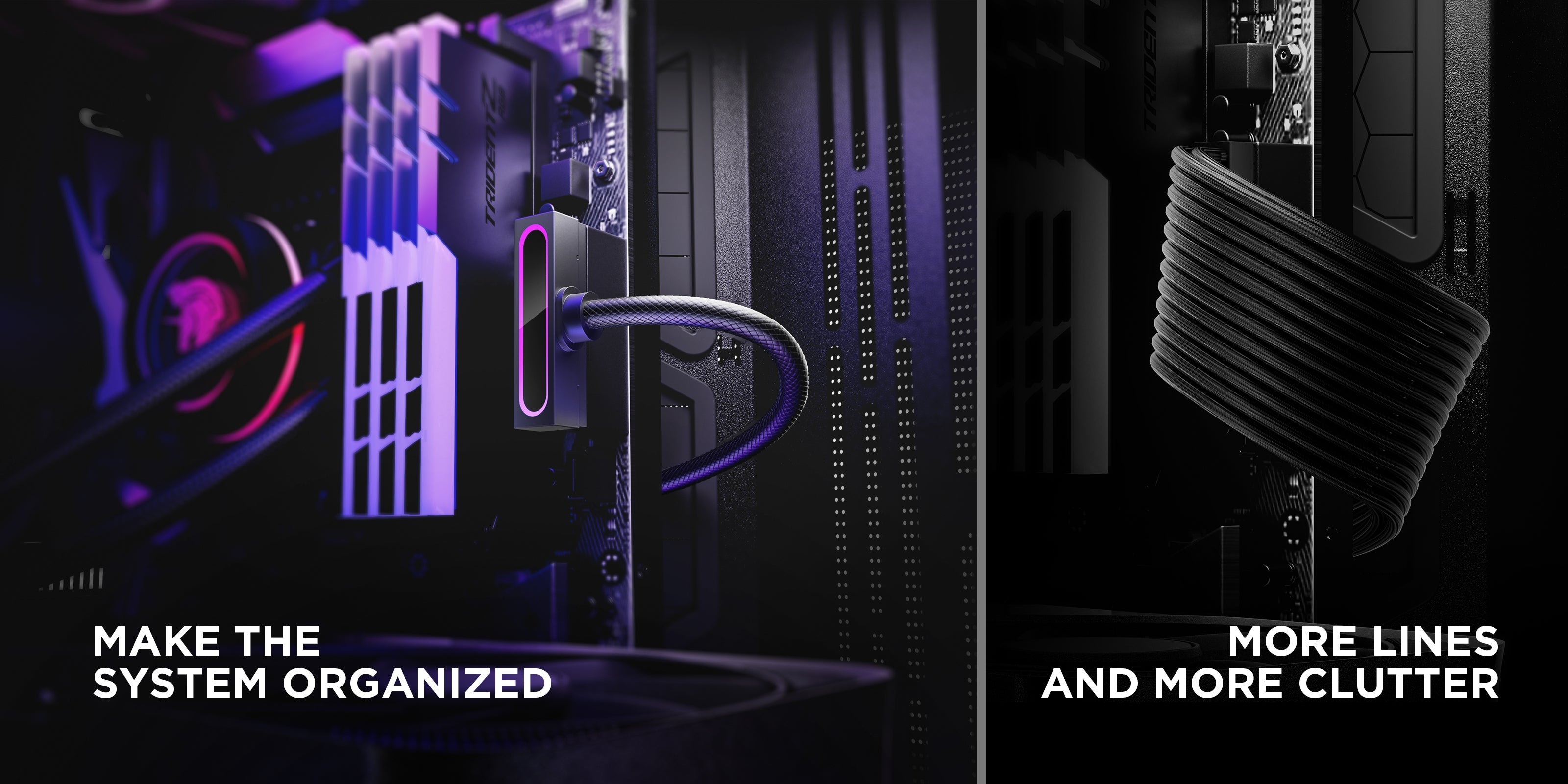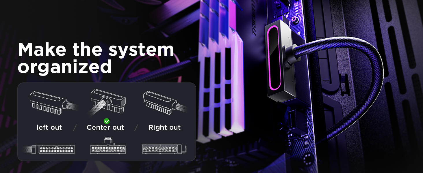 Integrated Minimalist Design: Designed with a seamless style and 90° right-angle connectors. No bending required—ensuring full terminal contact. Plug-and-play setup improves flexibility and keeps cable management clean, making it an ideal choice for PC DIY builds.