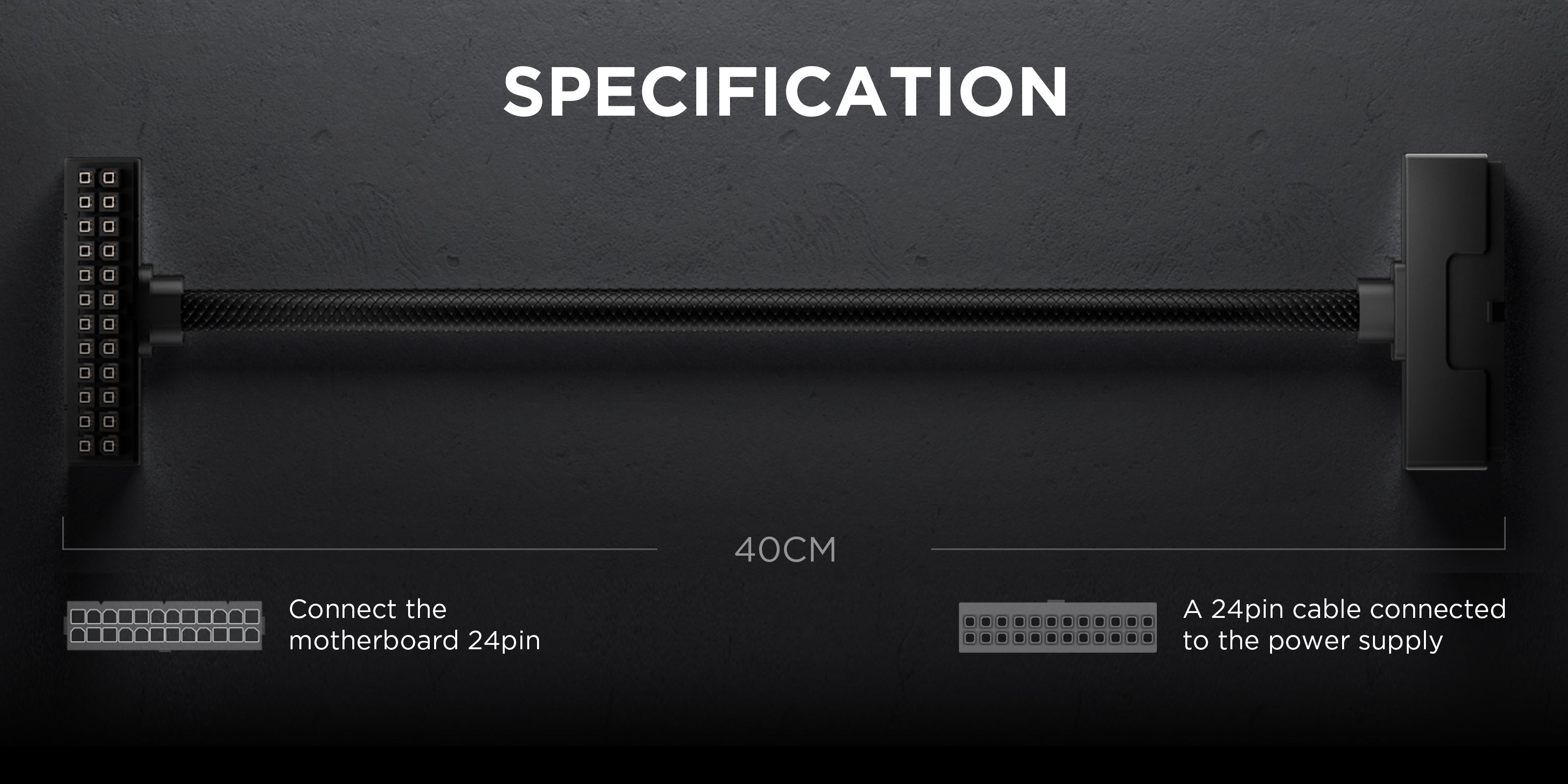 24PIN / CPU 8PIN / GPU 8PIN extension cables: 30cm / 11.81in length, perfect for extension use.