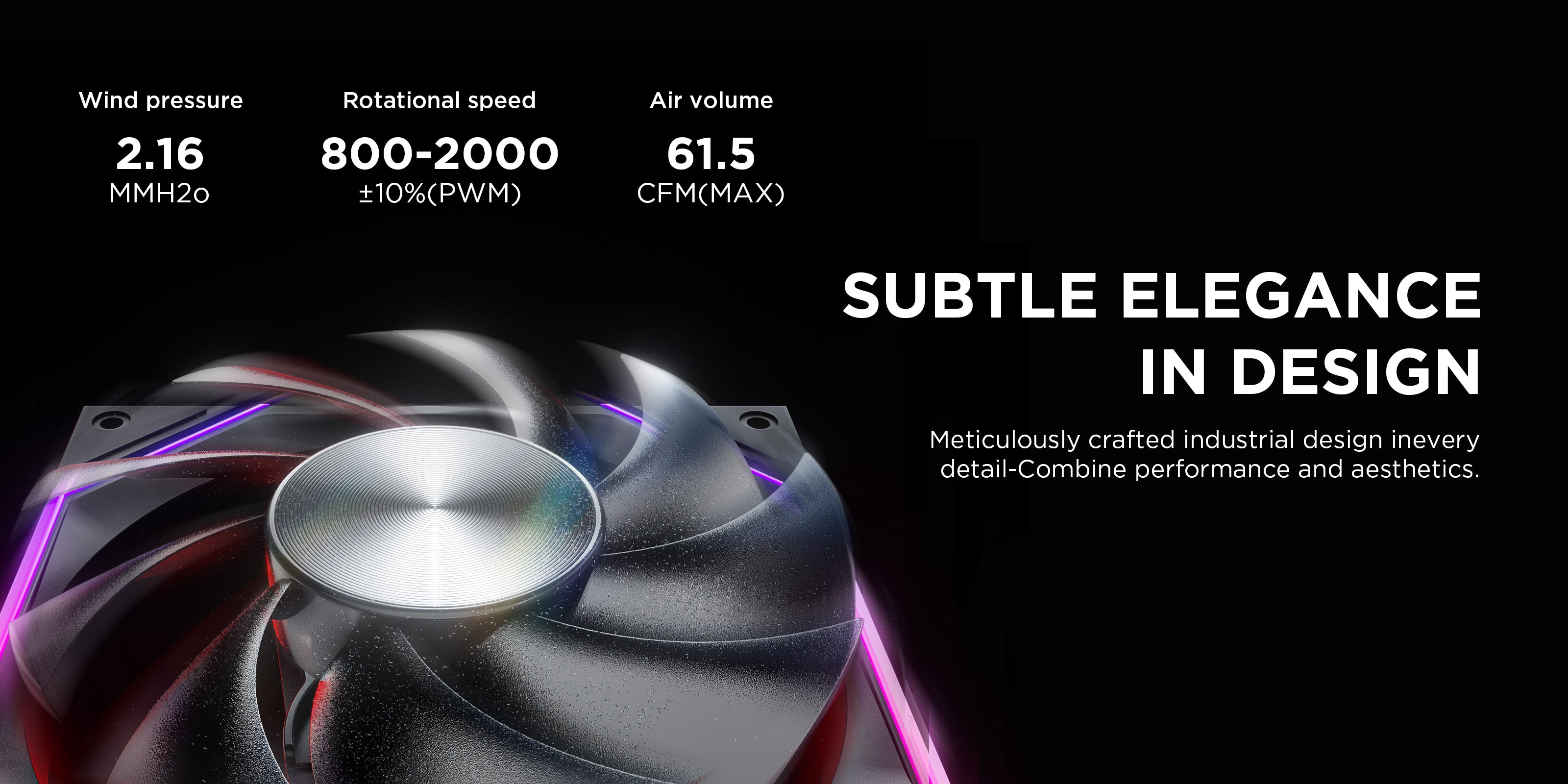 Unique Design Aesthetics:Our fans are not just functional; they are a design masterpiece. The appearance of the fans is unique and has been carefully crafted over a long period. The light lines and blade lines are meticulously designed, adhering to the golden ratio for aesthetic perfection. This design not only enhances the cooling efficiency but also significantly boosts the visual appeal of your PC case.