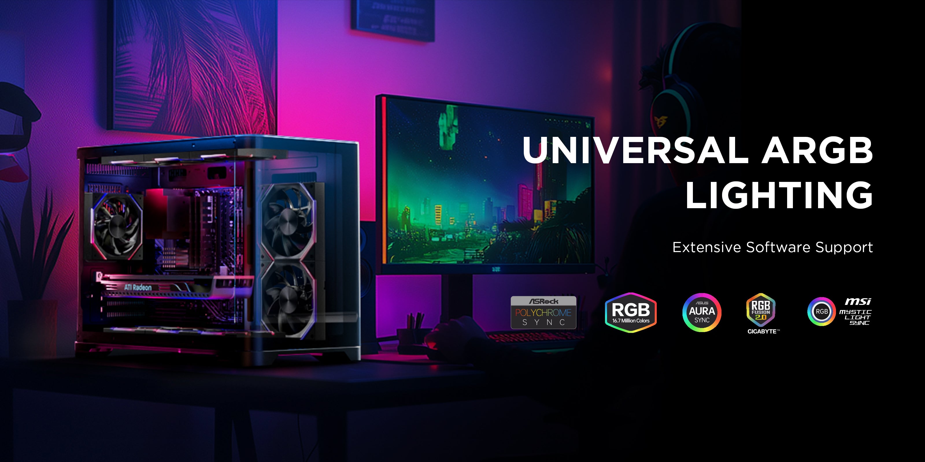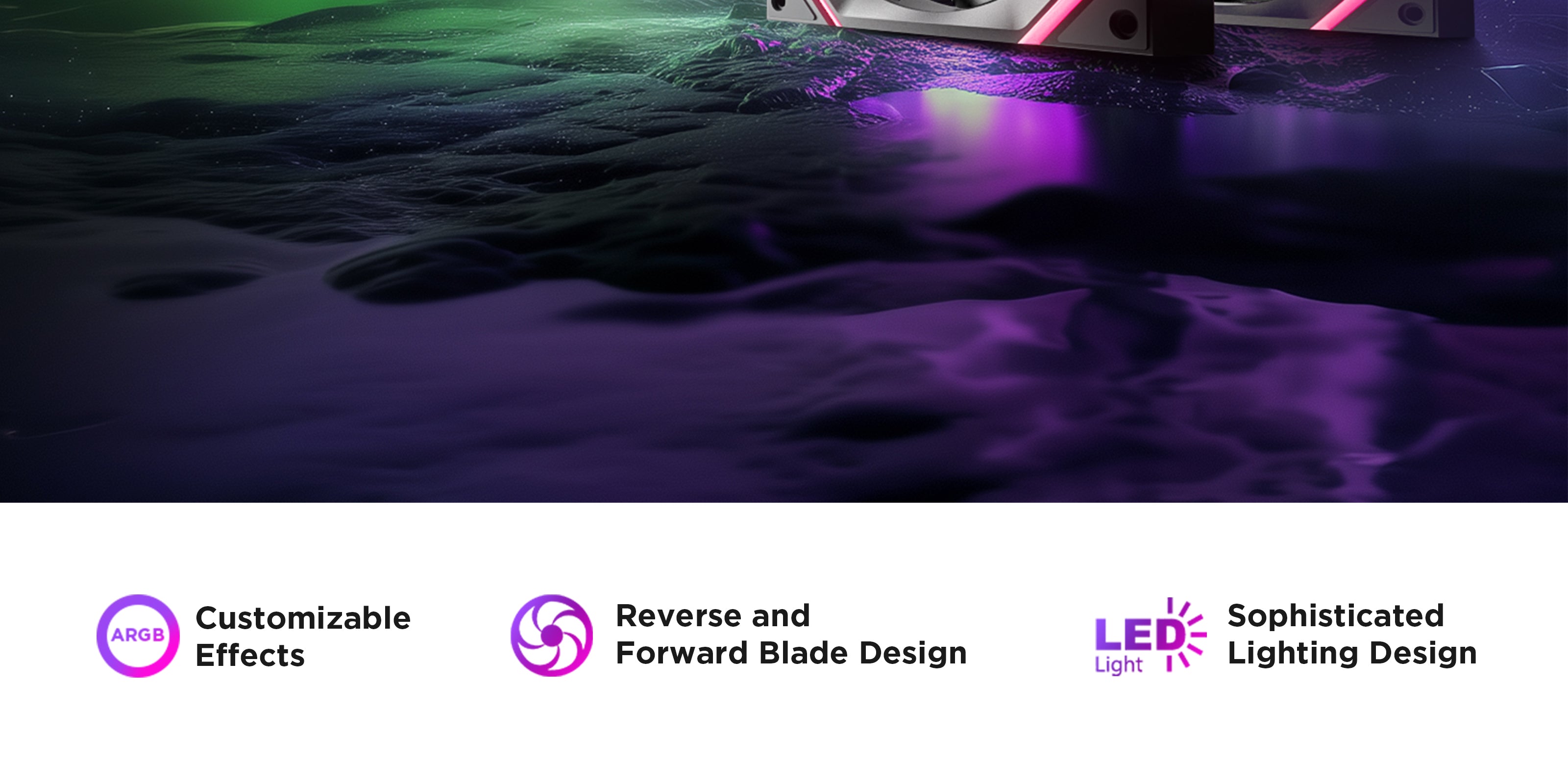 ARGB Lighting Effects:Transform your PC into a visual masterpiece with our ARGB lighting.With patented OSKAR light beads, which provide richer colors and smoother lighting effects. Choose from a variety of colors and effects to match your setup's aesthetic. The RGB lighting is customizable by motherboard software, allowing you to sync the lighting with your other components. Whether you're building a gaming rig or a high-performance workstation, our fans add a touch of elegance and style.