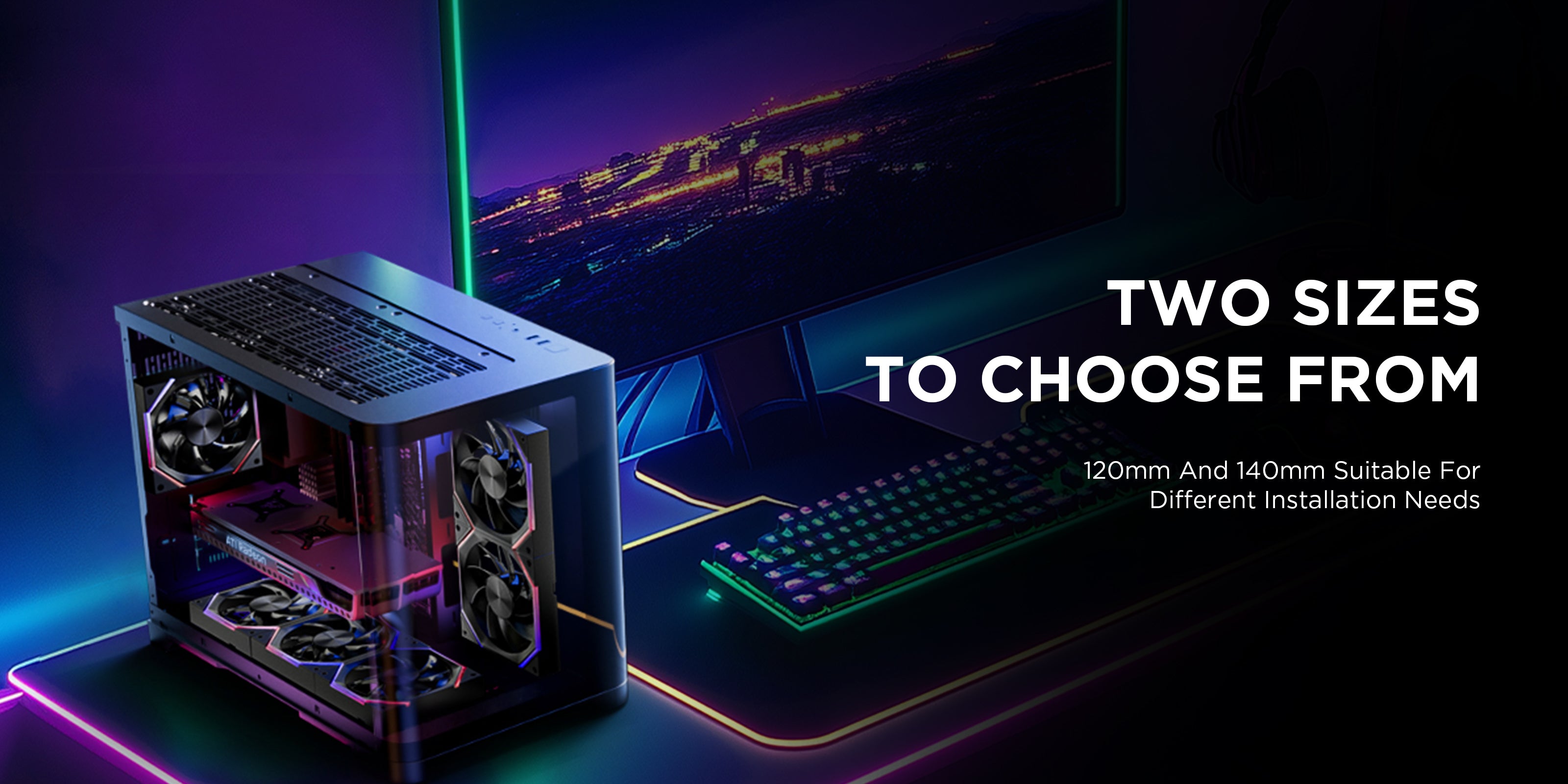 Versatile Size Options:We understand that different builds require different solutions. That's why we offer both 120mm and 140mm sizes to fit a wide range of cases. Whether you're working with a compact setup or a larger tower, our fans are designed to provide optimal cooling and fit seamlessly into your build. Choose the size that best fits your needs and enhance your PC's performance and aesthetics.