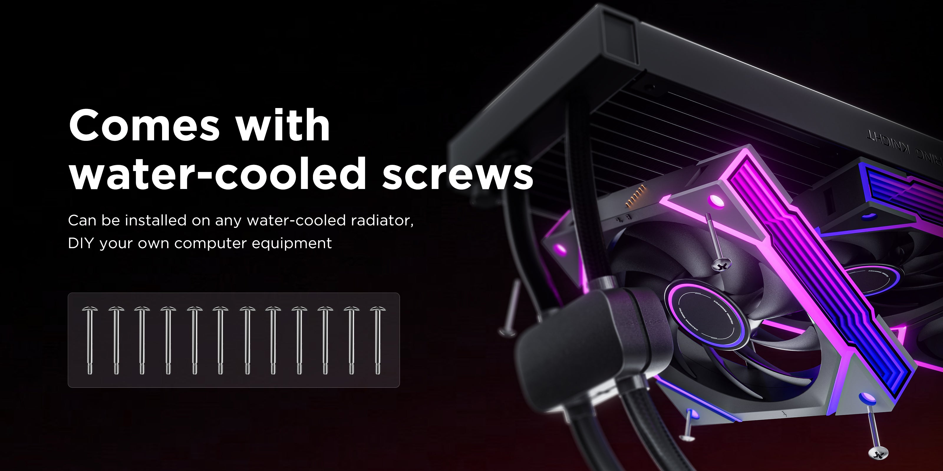 【Versatile & Safe Design】:Comes with dedicated water-cooling screws for water-cooling system installation. Braided flame-retardant cables are high-temperature resistant, anti-aging and safer. PWM cables auto-adjust speed (800-2000 ±10% RPM) by chassis temp, with male-female connectors for daisy-chaining to simplify wiring.
